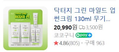 - 닥터지 그린 마일드 업 선: 피부 자극 없이 순하게 차단