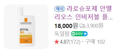 - 라로슈포제 안뗄리오스 플루이드: 민감성 피부에도 안심, 산뜻한 발림성