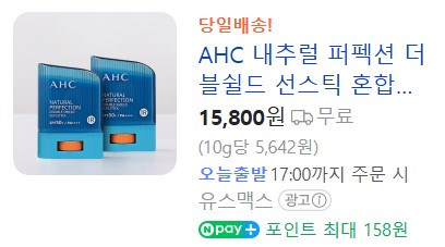 - AHC 내추럴 퍼펙션 더블쉴드 선스틱: 휴대 간편한 스틱형, 메이크업 위에도 OK