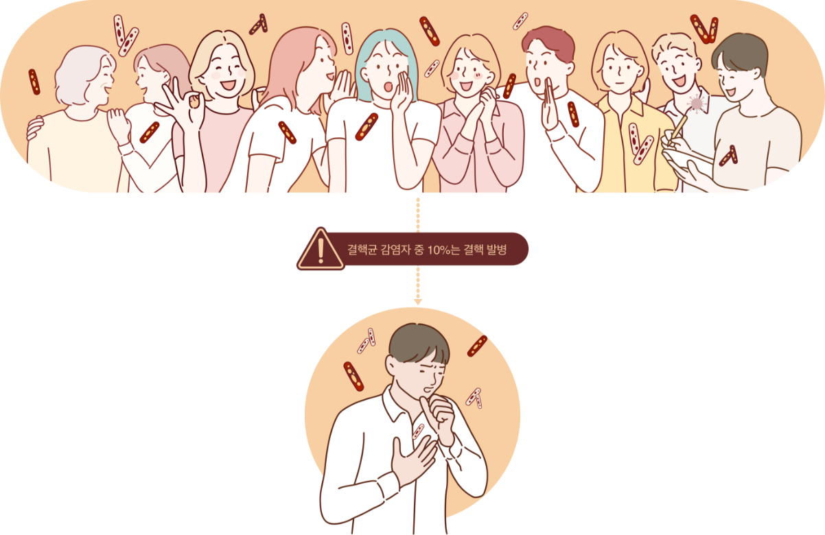 결핵은 주로 기침, 재채기를 통해 전염되는 공기 감염 질환으로, 면역력이 약한 사람에게 쉽게 감염될 수 있어요.