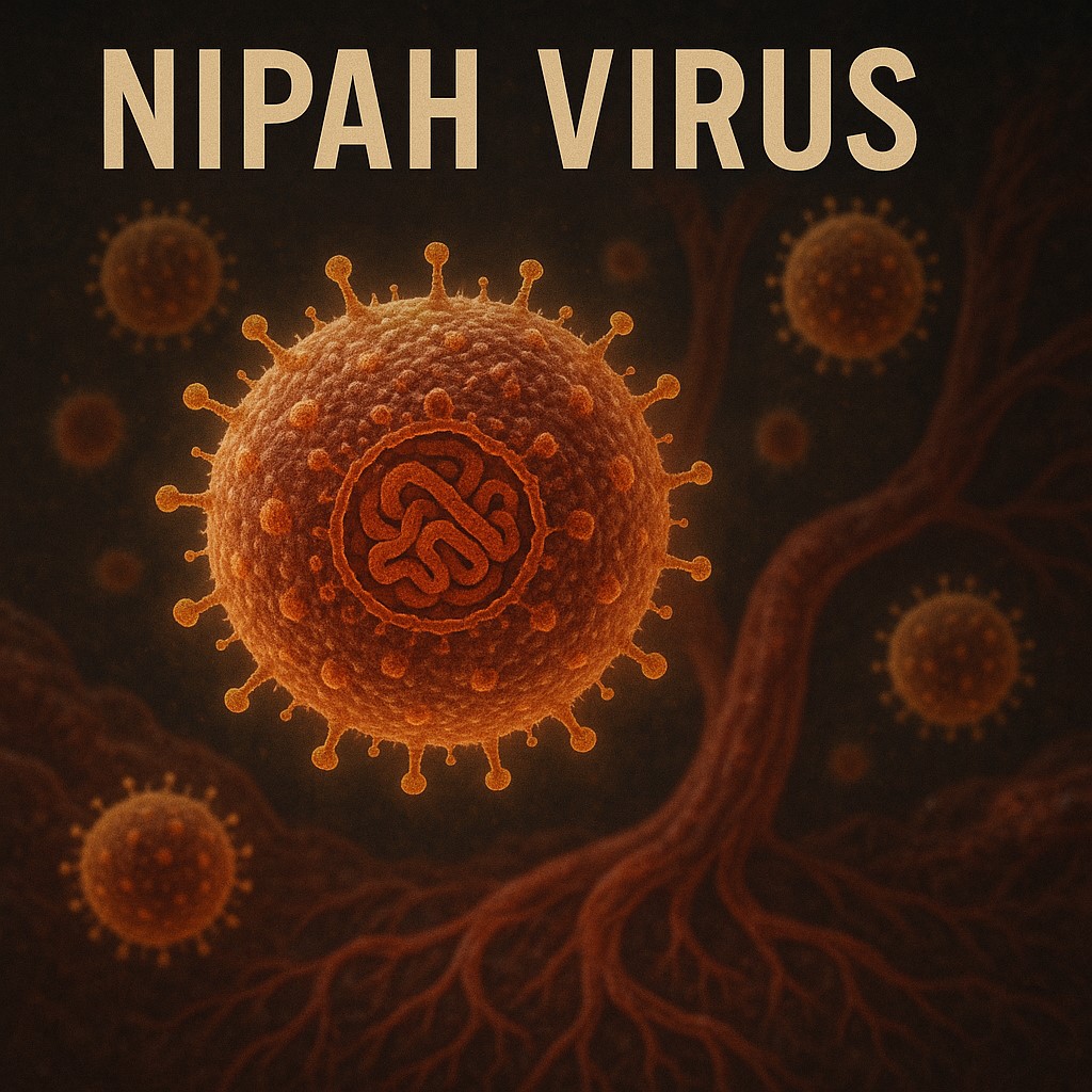 니파 바이러스(Nipah virus)는 1998년 말레이시아에서 처음 발견된 인수공통전염병입니다. 자연 숙주는 과일박쥐로 알려져 있으며, 주로 돼지나 과일을 매개로 인간에게 전파됩니다.