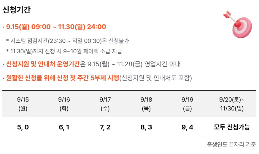 - 본인 명의로 신청해야 하며, 소비 실적 제출은 필요 없음