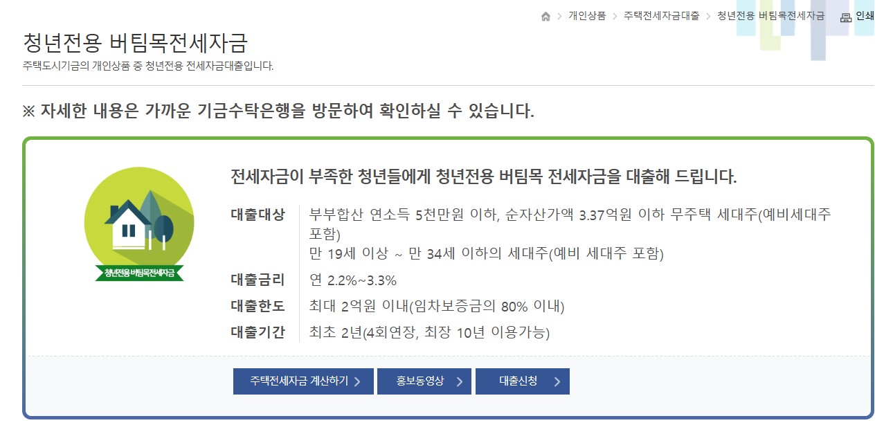 주택도시기금 청년 버팀목 전세자금 대출 바로가기입니다