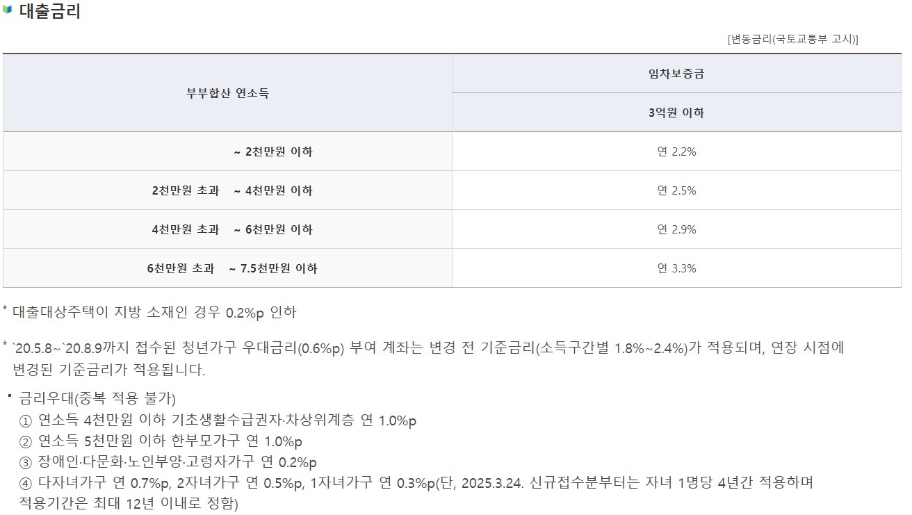 청년 버팀목 전세대출의 금리는 연 2.2%~3.3% 수준의 변동금리이며, 다양한 조건에 따라 금리 인하가 가능합니다.