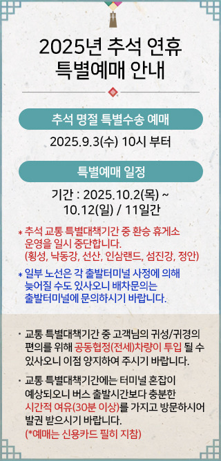 - 고속버스: 9월 3일부터