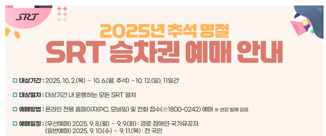 오늘은 2025 추석 기차표 예매 일정과 꿀팁에 대해 정리해보려고 합니다.